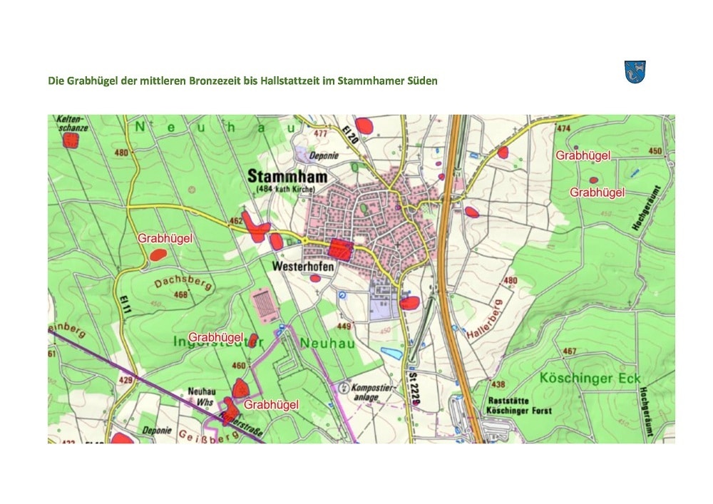 Über diese Gräber schütteten sie runde Hügel auf, von denen viele noch heute als besonders schützenswerte Denkmale in unseren Wäldern um Stammham vorhanden sind.
